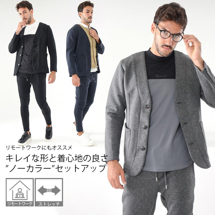 セットアップ メンズ 秋冬 秋服 ジャケット ノーカラー スーツ上下 スウェット ストレッチ グレー ネイビー ブラック M Xl 大きいサイズ set Slowgan 通販 Yahoo ショッピング
